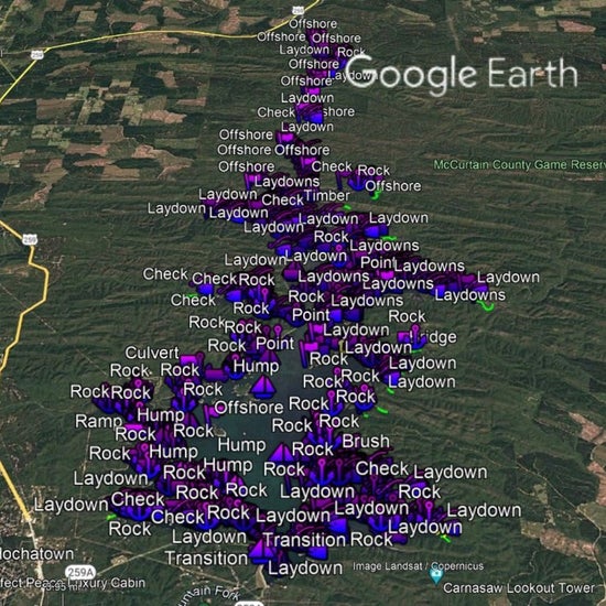Discover the ultimate bass fishing secrets at Broken Bow Lake with our meticulously crafted fishing waypoints. Leveraging the power of Google Earth®, Navionics® as well as other tools, we've pinpointed the most productive hot spots where bass thrive. Delve into the intricacies of the lake breakdown, as our waypoints lead you to strategic locations like brush piles, ledges, rocks, and timber, ensuring you're at the heart of the action.