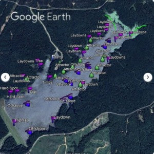 Discover the ultimate bass fishing secrets at Calling Panther Lake with our meticulously crafted fishing waypoints. Leveraging the power of Google Earth®, Navionics® as well as other tools, we've pinpointed the most productive hot spots where bass thrive. Delve into the intricacies of the lake breakdown, as our waypoints lead you to strategic locations like brush piles, ledges, rocks, and timber, ensuring you're at the heart of the action.