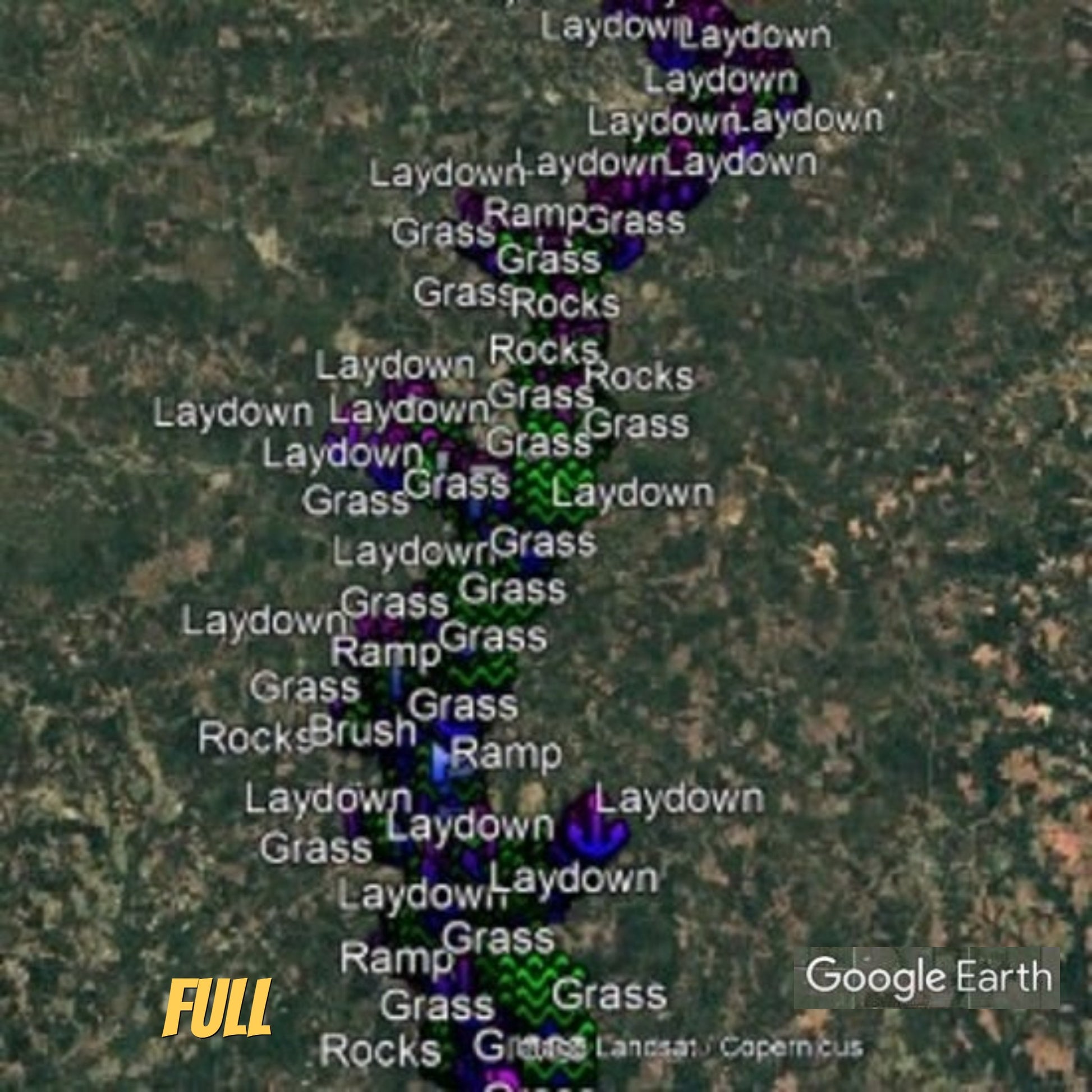 Discover the ultimate bass fishing secrets at Lake Eufaula, AL with our meticulously crafted fishing waypoints. Leveraging the power of Google Earth®, Navionics® as well as other tools, we've pinpointed the most productive hot spots where bass thrive. Delve into the intricacies of the lake breakdown, as our waypoints lead you to strategic locations like brush piles, ledges, rocks, and timber, ensuring you're at the heart of the action.