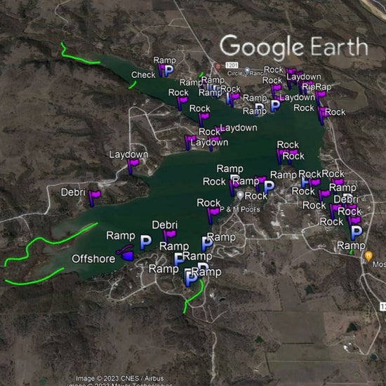 Discover the ultimate bass fishing secrets at Hubert H. Moss Lake with our meticulously crafted fishing waypoints. Leveraging the power of Google Earth®, Navionics® as well as other tools, we've pinpointed the most productive hot spots where bass thrive. Delve into the intricacies of the lake breakdown, as our waypoints lead you to strategic locations like brush piles, ledges, rocks, and timber, ensuring you're at the heart of the action.