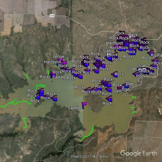 Discover the ultimate bass fishing secrets at Kickapoo Reservoir with our meticulously crafted fishing waypoints. Leveraging the power of Google Earth®, Navionics® as well as other tools, we've pinpointed the most productive hot spots where bass thrive. Delve into the intricacies of the lake breakdown, as our waypoints lead you to strategic locations like brush piles, ledges, rocks, and timber, ensuring you're at the heart of the action.