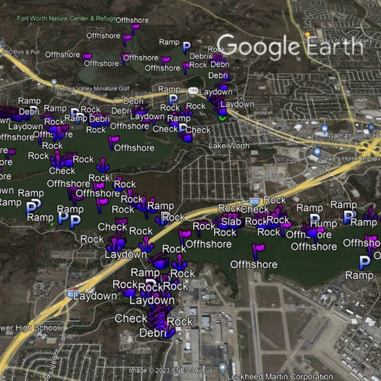 Discover the ultimate bass fishing secrets at Lake Worth with our meticulously crafted fishing waypoints. Leveraging the power of Google Earth®, Navionics® as well as other tools, we've pinpointed the most productive hot spots where bass thrive. Delve into the intricacies of the lake breakdown, as our waypoints lead you to strategic locations like brush piles, ledges, rocks, and timber, ensuring you're at the heart of the action.