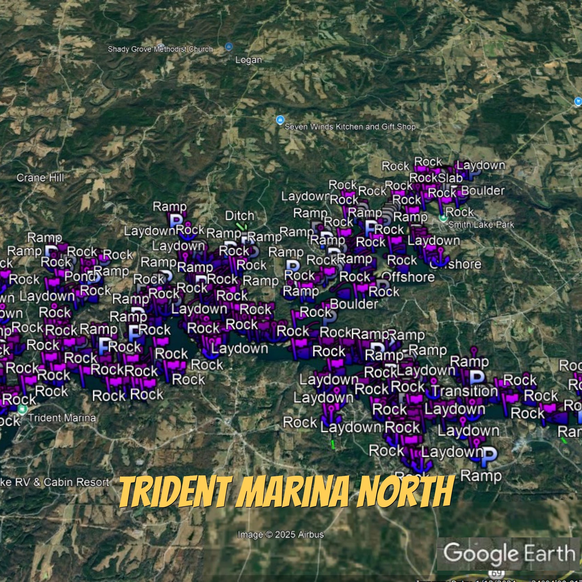 Discover the ultimate bass fishing secrets at Lewis Smith Reservoir, AL with our meticulously crafted fishing waypoints. Leveraging the power of Google Earth®, Navionics® as well as other tools, we've pinpointed the most productive hot spots where bass thrive. Delve into the intricacies of the lake breakdown, as our waypoints lead you to strategic locations like brush piles, ledges, rocks, and timber, ensuring you're at the heart of the action.