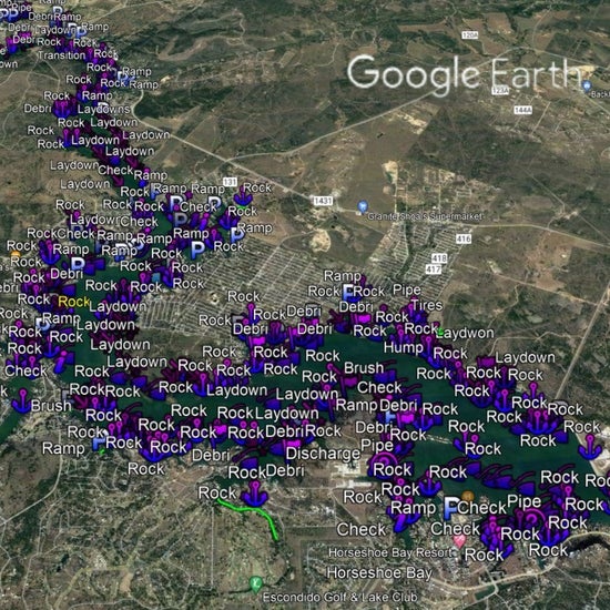 Discover the ultimate bass fishing secrets at Lake Lyndon B. Johnson with our meticulously crafted fishing waypoints. Leveraging the power of Google Earth®, Navionics® as well as other tools, we've pinpointed the most productive hot spots where bass thrive. Delve into the intricacies of the lake breakdown, as our waypoints lead you to strategic locations like brush piles, ledges, rocks, and timber, ensuring you're at the heart of the action.