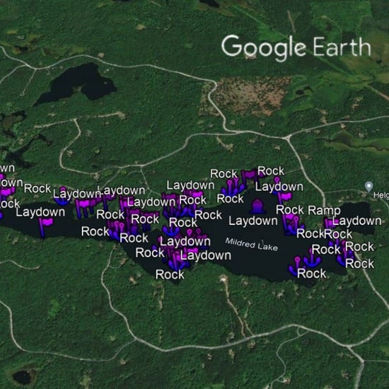 Discover the ultimate bass fishing secrets at Mildred Lake with our meticulously crafted fishing waypoints. Leveraging the power of Google Earth®, Navionics® as well as other tools, we've pinpointed the most productive hot spots where bass thrive. Delve into the intricacies of the lake breakdown, as our waypoints lead you to strategic locations like brush piles, ledges, rocks, and timber, ensuring you're at the heart of the action.