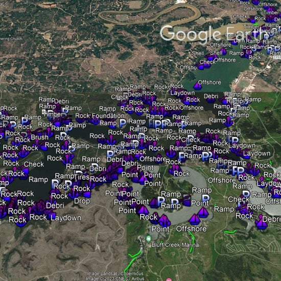 Discover the ultimate bass fishing secrets at Possum Kingdom Lake with our meticulously crafted fishing waypoints. Leveraging the power of Google Earth®, Navionics® as well as other tools, we've pinpointed the most productive hot spots where bass thrive. Delve into the intricacies of the lake breakdown, as our waypoints lead you to strategic locations like brush piles, ledges, rocks, and timber, ensuring you're at the heart of the action.