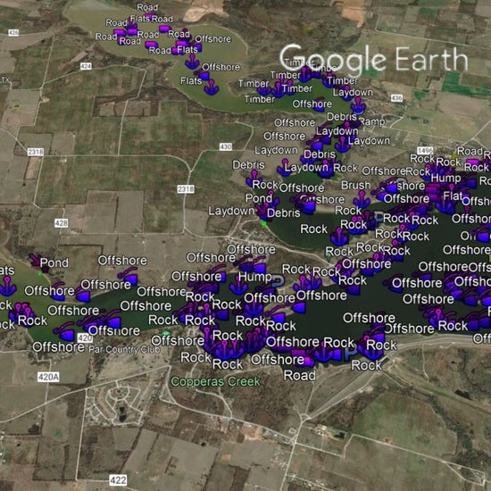 Discover the ultimate bass fishing secrets at Proctor Lake with our meticulously crafted fishing waypoints. Leveraging the power of Google Earth®, Navionics® as well as other tools, we've pinpointed the most productive hot spots where bass thrive. Delve into the intricacies of the lake breakdown, as our waypoints lead you to strategic locations like brush piles, ledges, rocks, and timber, ensuring you're at the heart of the action.