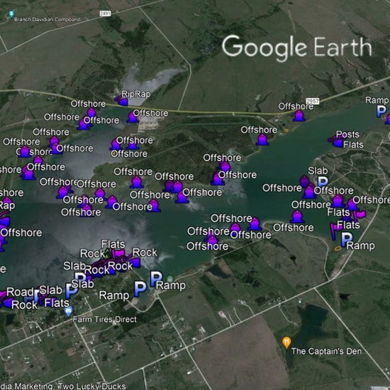 Discover the ultimate bass fishing secrets at Tradinghouse Creek Reservoir with our meticulously crafted fishing waypoints. Leveraging the power of Google Earth®, Navionics® as well as other tools, we've pinpointed the most productive hot spots where bass thrive. Delve into the intricacies of the lake breakdown, as our waypoints lead you to strategic locations like brush piles, ledges, rocks, and timber, ensuring you're at the heart of the action.