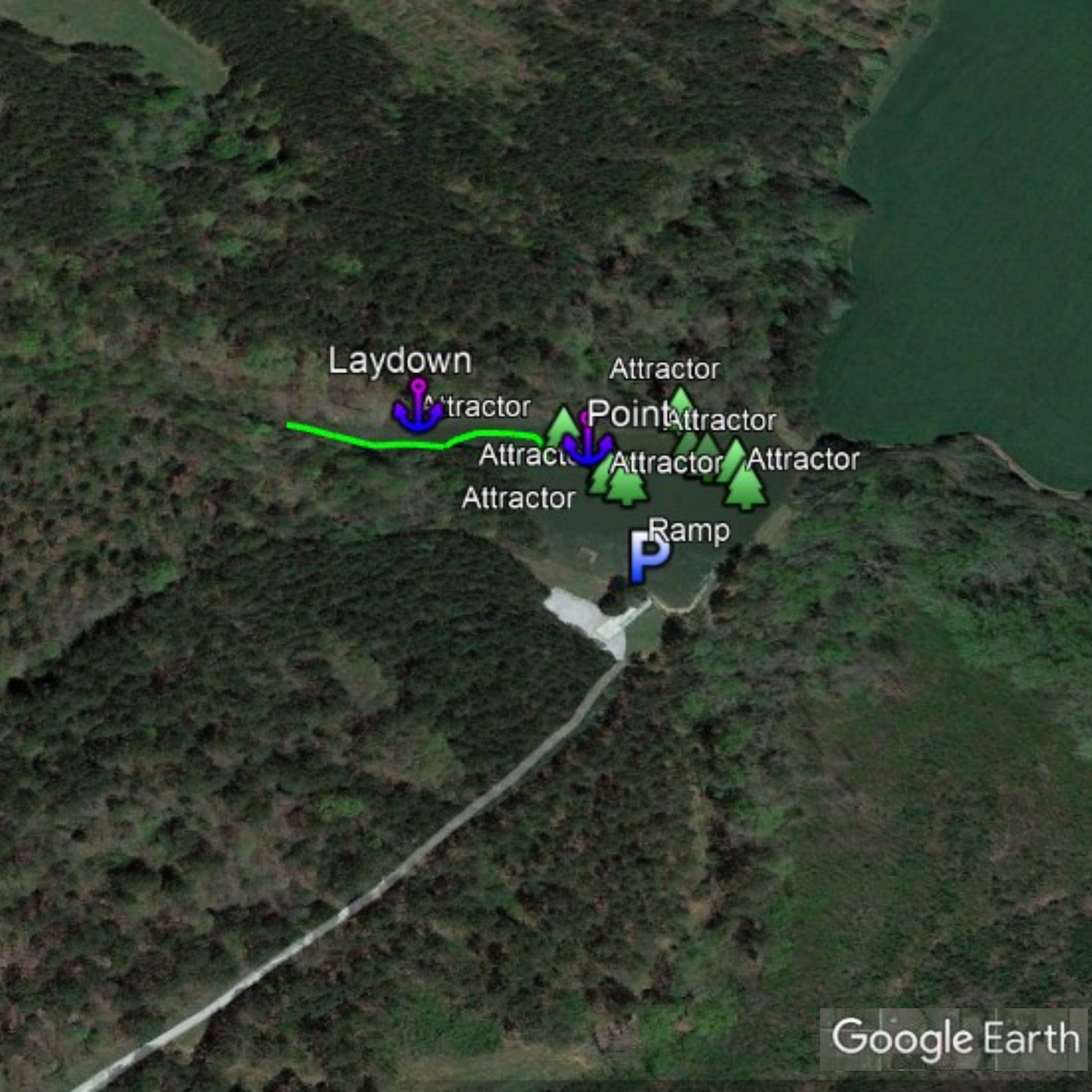 Discover the ultimate bass fishing secrets at Whitetail Lake, GA with our meticulously crafted fishing waypoints. Leveraging the power of Google Earth®, Navionics® as well as other tools, we've pinpointed the most productive hot spots where bass thrive. Delve into the intricacies of the lake breakdown, as our waypoints lead you to strategic locations like brush piles, ledges, rocks, and timber, ensuring you're at the heart of the action.